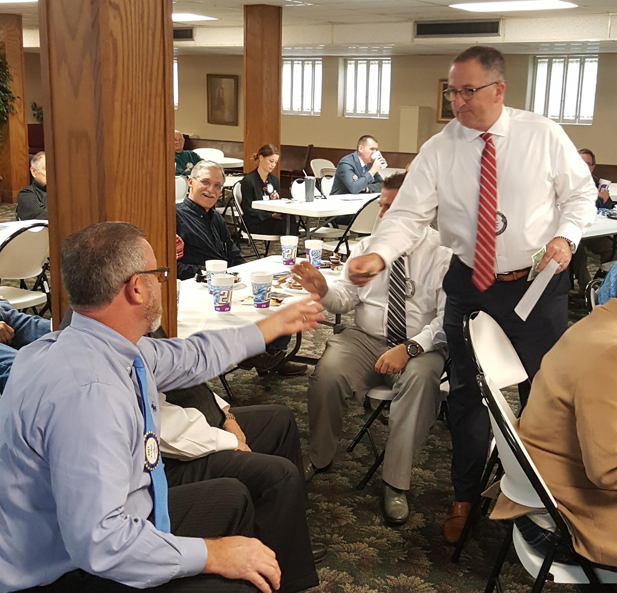 Sgt. of Arms proxy, Ed Stanton did a great job of collecting fines:
