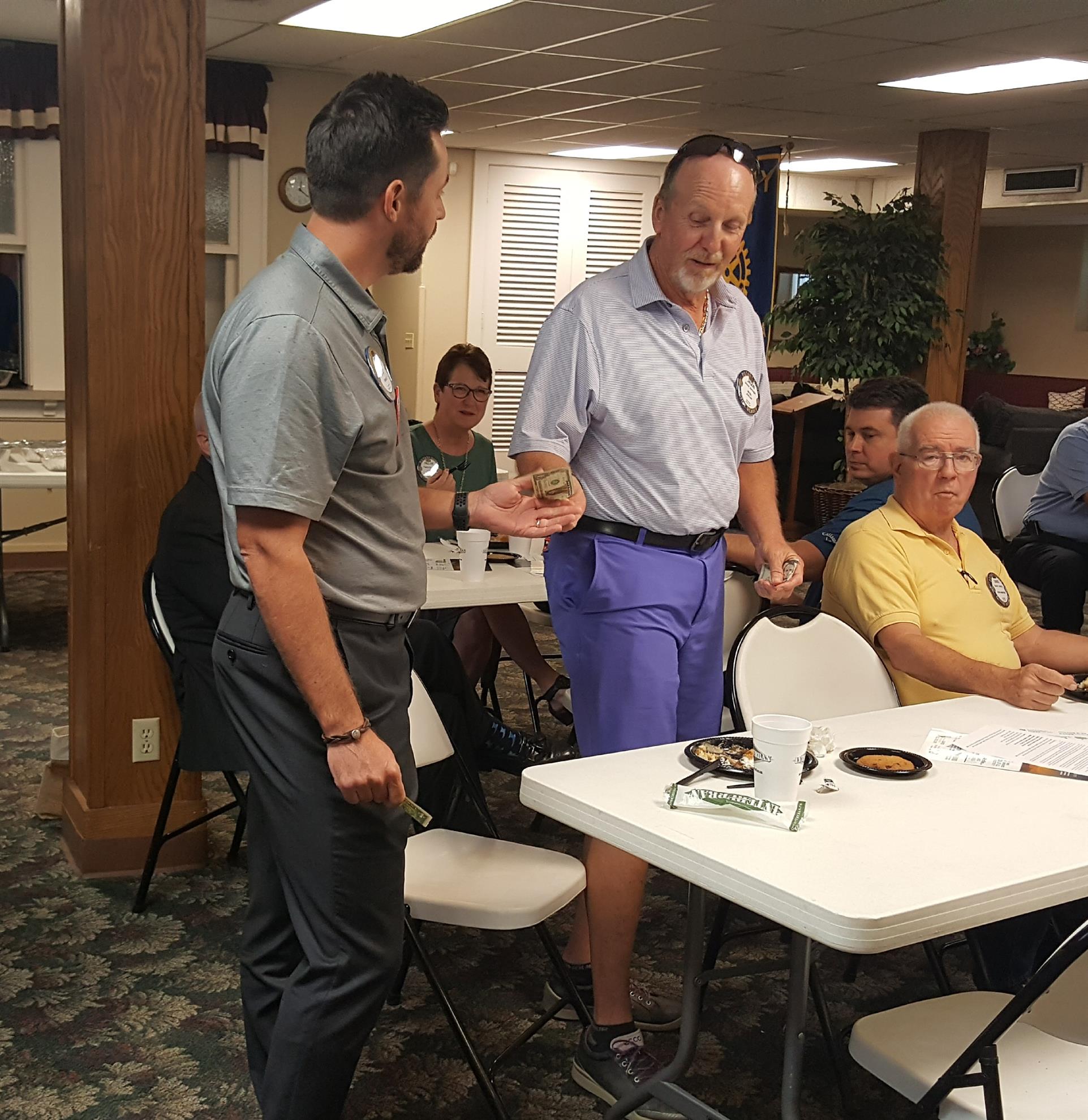 Sgt. of Arms Duvall collecting a fine from Rot. Ed Stanton
