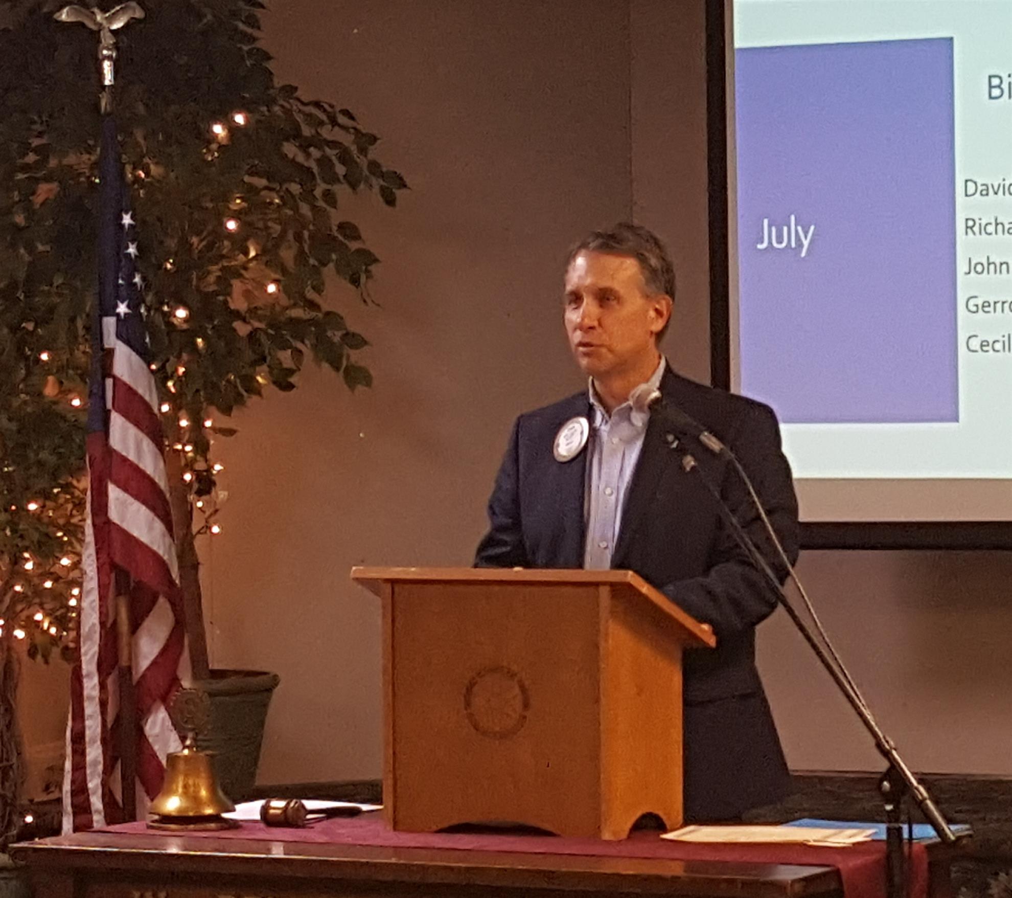 Rot. Brad Duvall providing the Sunshine report.