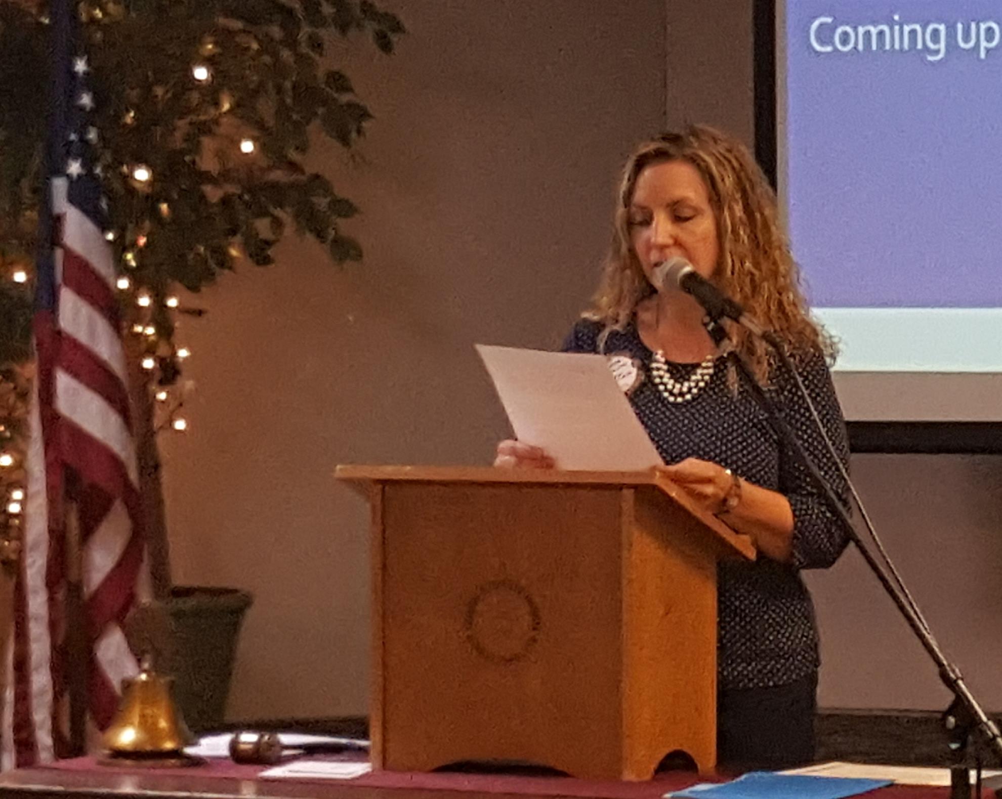 Treas. Sharon Bowman introducing today's program