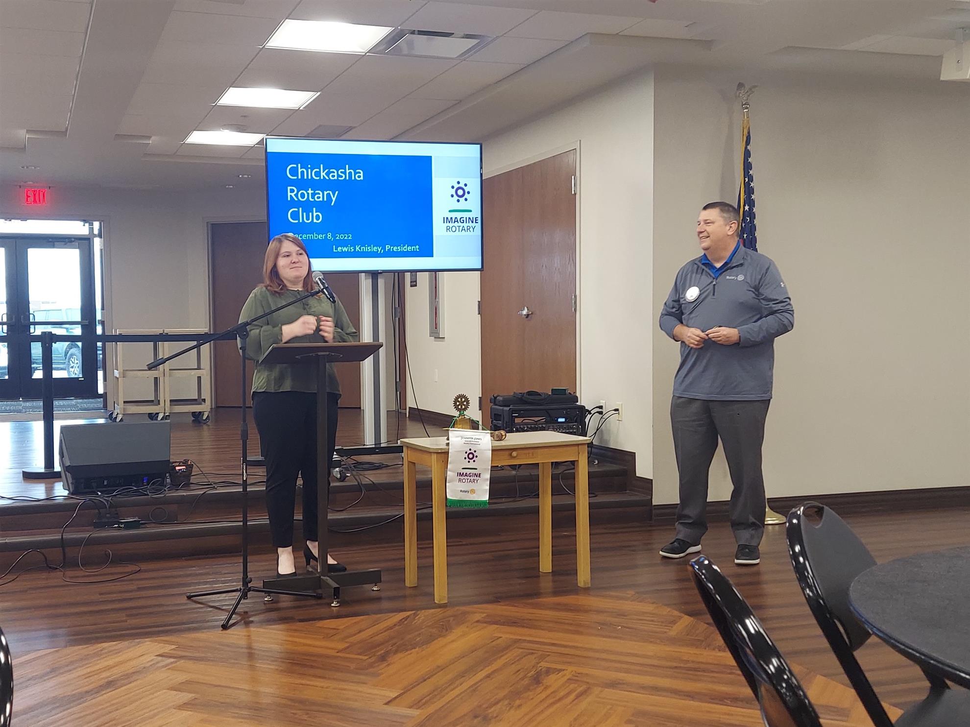 New members Shawn Freie (left picture) and Delaney Fitch (right picture, left) introduce themselves to Rotary.