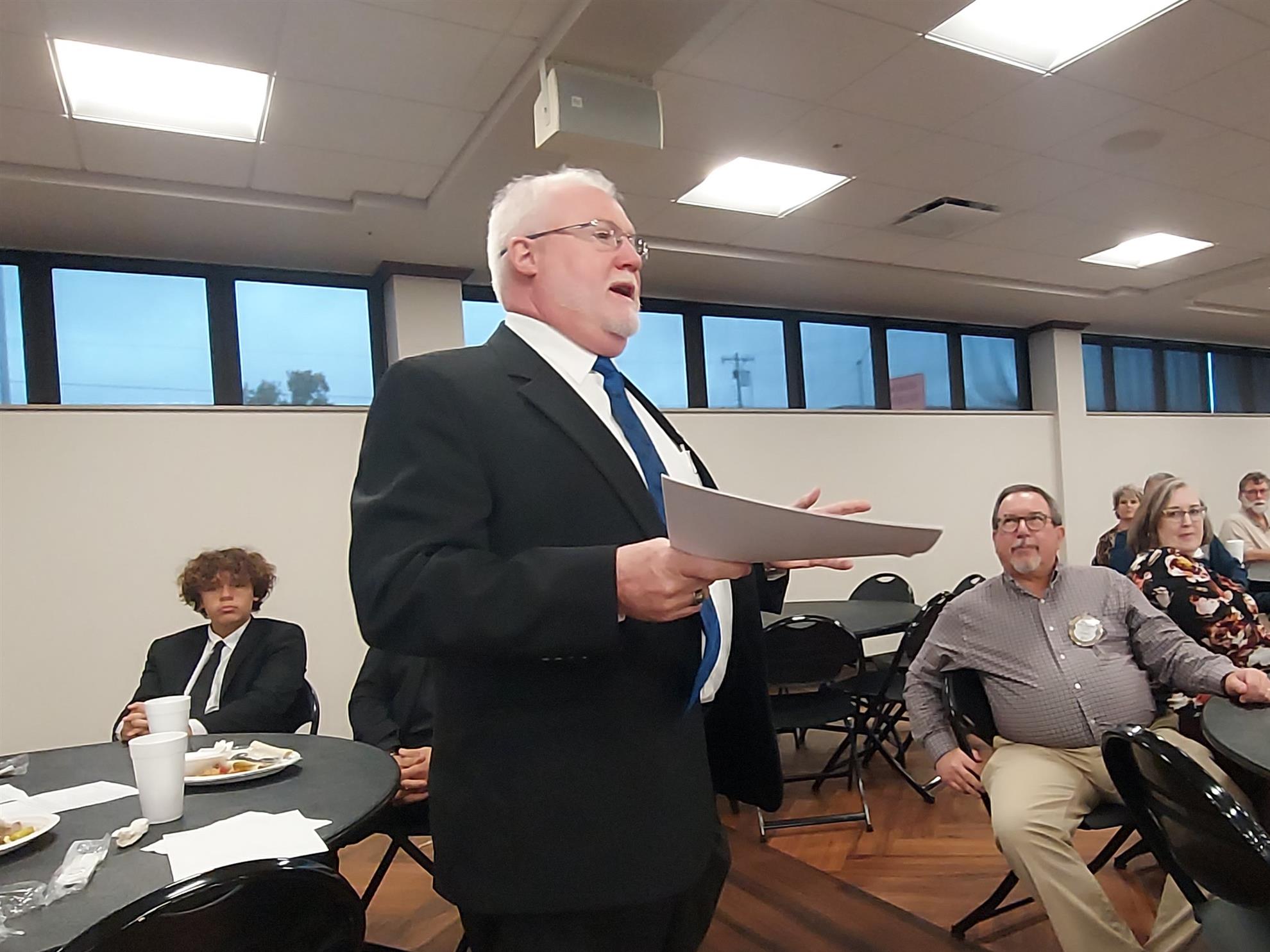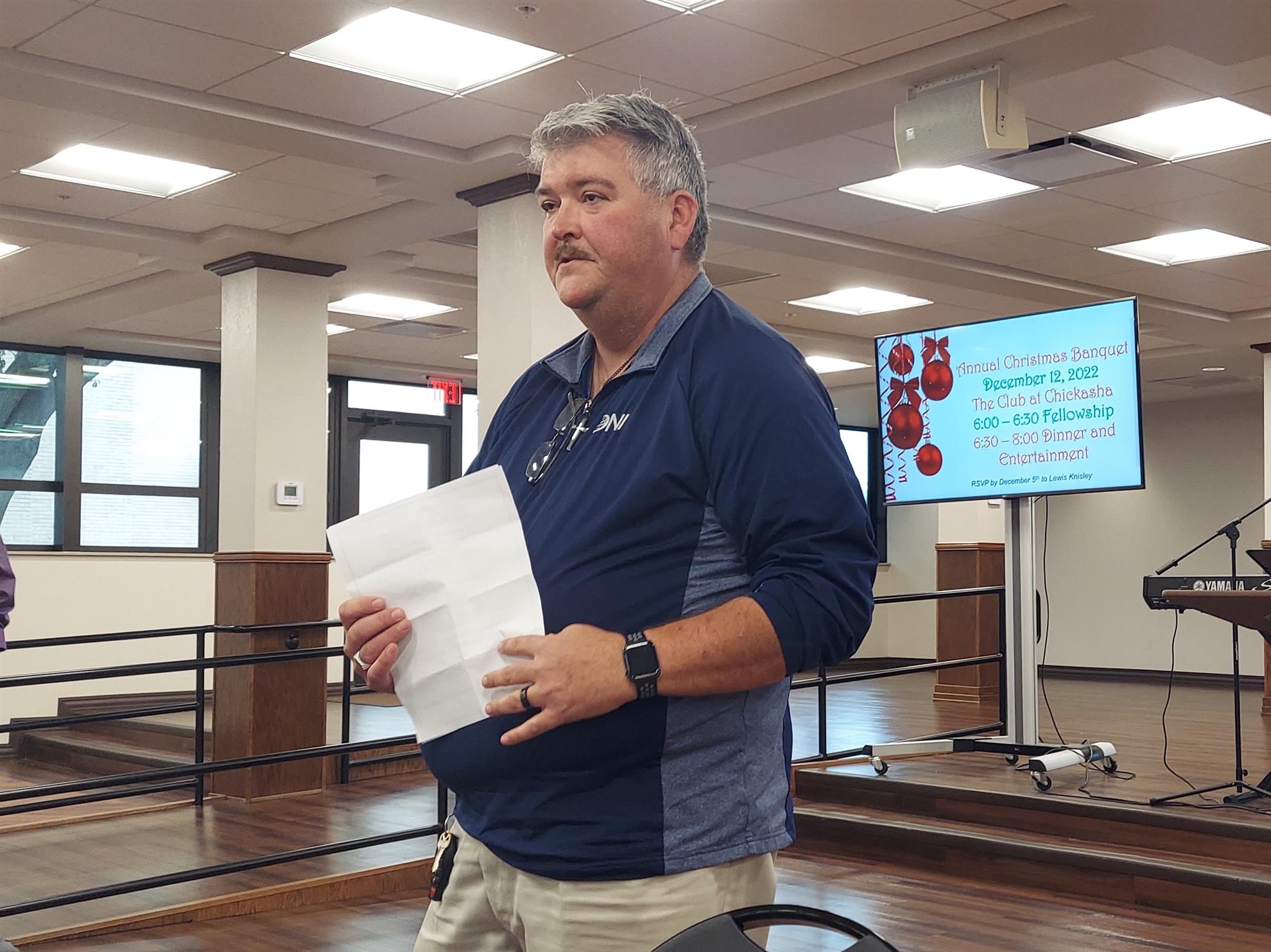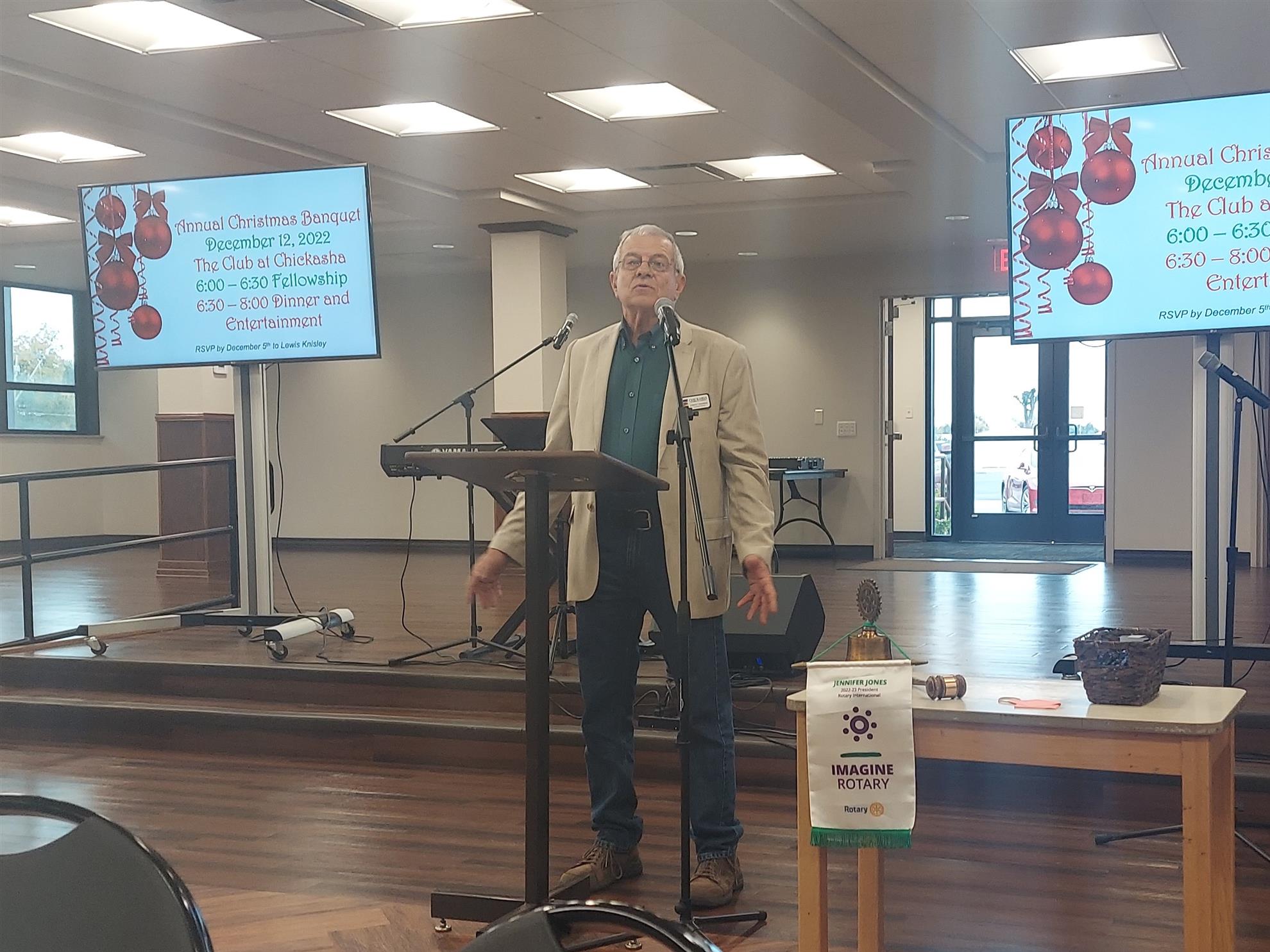 The November 10, 2022 meeting of the Rotary Club of Chickasha was called to order by President Lewis Knisley. Rot. Mitch Williams led the club in singing a variation of "My Town" by Montgomery Gentry.