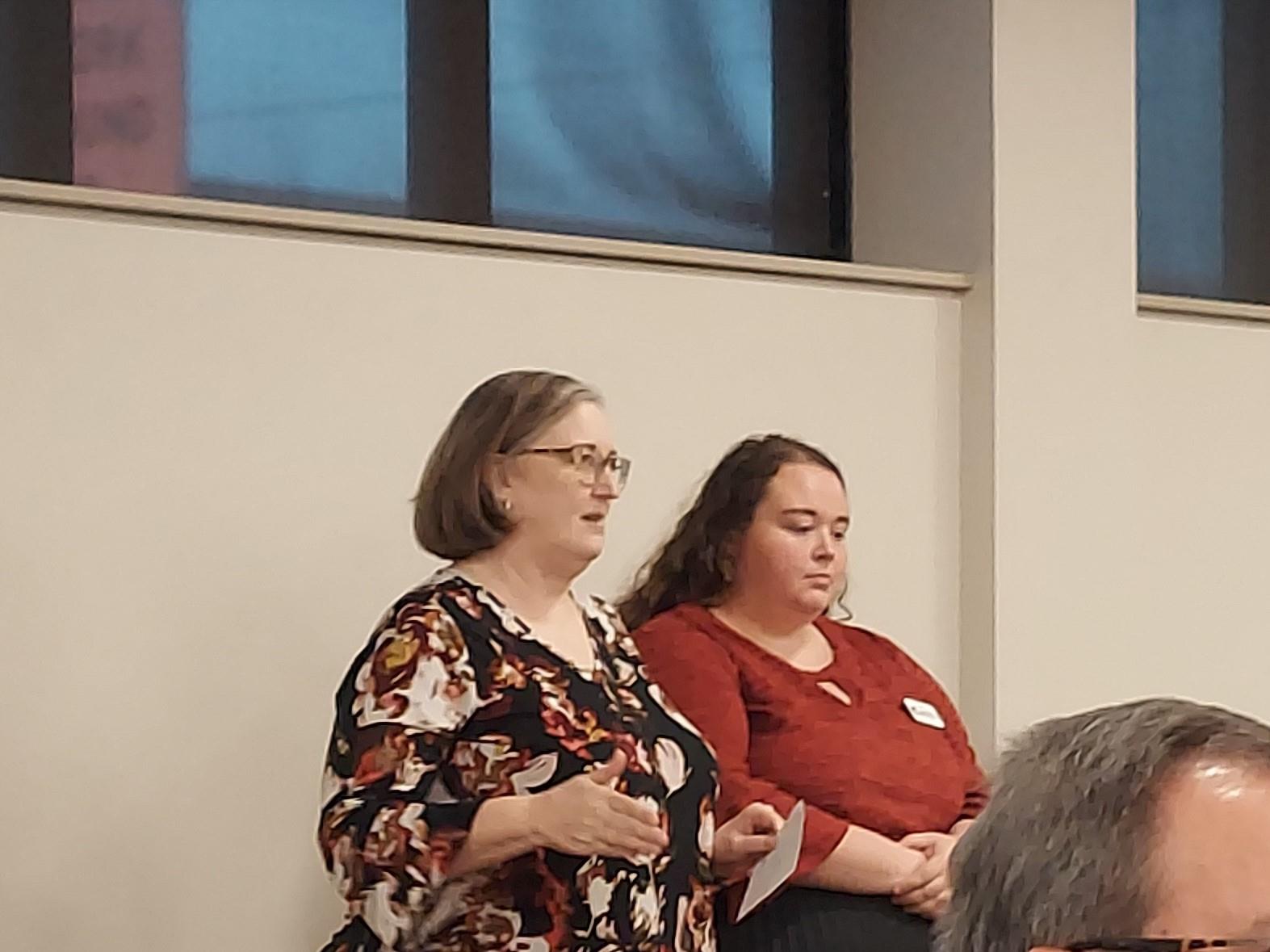 ![]() Rotarian David Sikes, representing the Masonic Fraternity of Chickasha. Among the Masons' missions is to "take good men and make them better." | ![]() Dr. Christy Clift and Cassie Poole of Altrusa of Chickasha. Altrusa is hosting its 30th annual Hall of Trees fundraiser this year. Proceeds from the event benefit local charities—this year's beneficiaries are CASA and the Chickasha Soup Kitchen. |